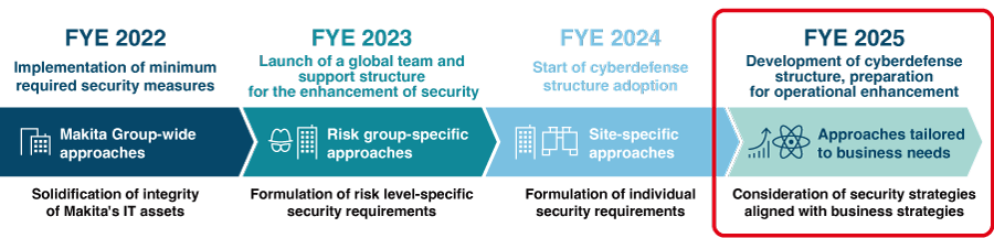 Amid the growing global risk of cyberattacks, since FYE 2022 we have endeavored to construct Group-wide security countermeasures. To meet the increasing sophistication of cyberattacks, we emphasize the prevention of deep intrusion through the early detection of cyberattacks and the enactment of measures for damage minimization and quick operational recovery.