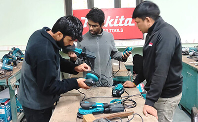 To foster greater interest in manufacturing, we offered educational program to students at the Indian Institute of Technology in the capital city of Delhi. They learned about practical applications and product technologies while experiencing Makita products firsthand.